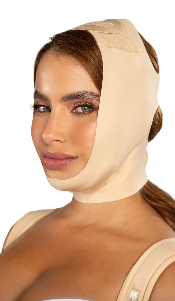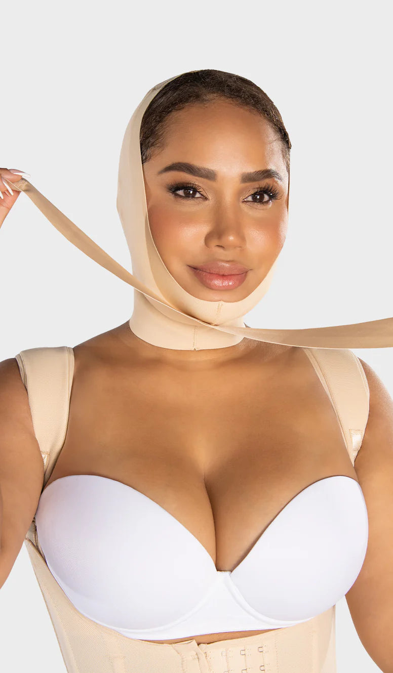 Prenda diseñada para mujeres que buscan una recuperación cómoda y un rostro más definido tras procedimientos estéticos.
